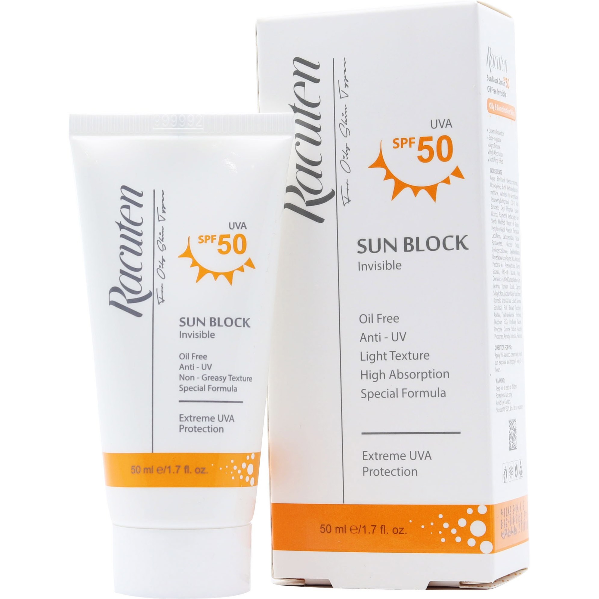 کرم ضد آفتاب بی رنگ پوست چرب و مختلط راکوتن SPF 50 حجم 50 میل